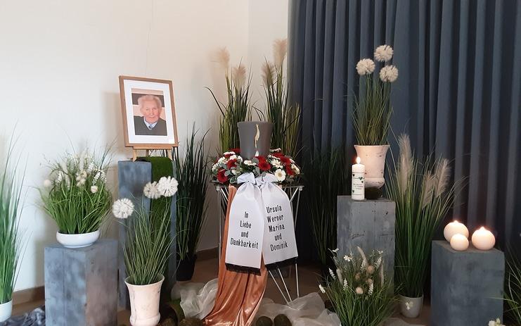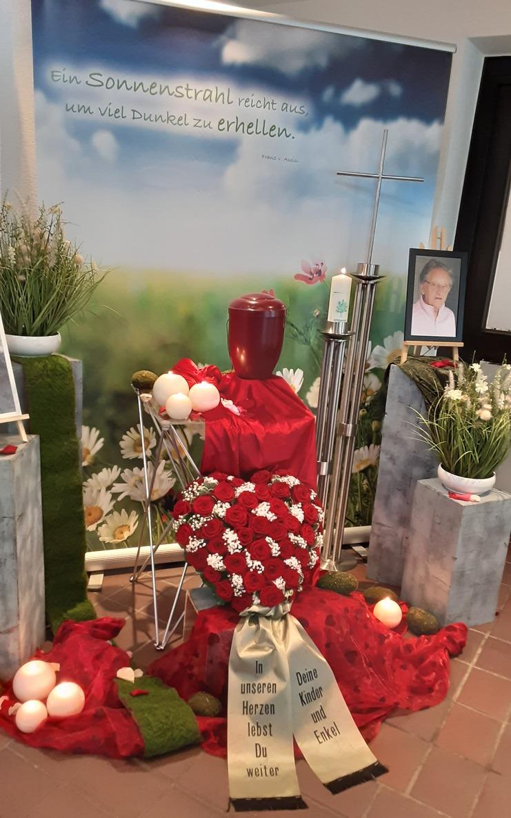 Dekoration in der Friedhofskapelle im beschaulichen Xanten-Vynen mit anschließender Urnenbeisetzung auf dem Friedhof.